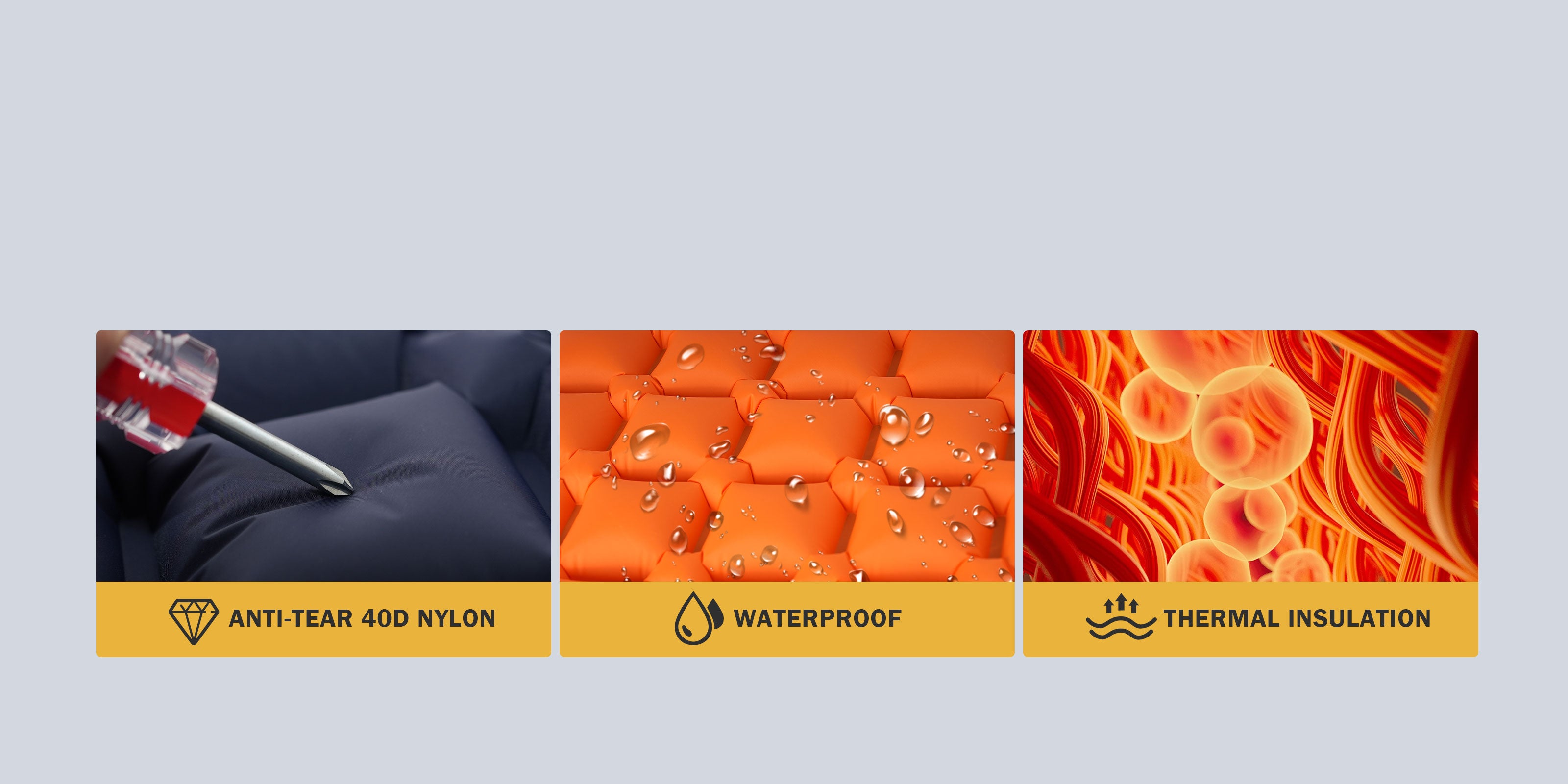 Crafted from premium 40D nylon with a TPU coating, RoosPad Ultra is built to withstand rough terrain, moisture, and abrasions. Its waterproof, tear-resistant surface ensures longevity, keeping you comfortable through three-season conditions—from cool spring nights to warm summer camping trips.